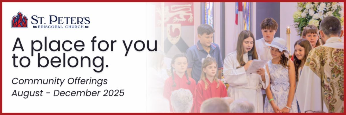 St. Peter’s Episcopal Church is a welcoming Christian community of all ages that embodies God’s word and sacraments, invites spiritual curiosity, celebrates children and youth, and embraces the world with God’s love.